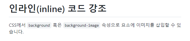 인라인 코드를 강조할 때에는 벡틱 기호 ` `를 사용하요 표기할 수 있습니다.