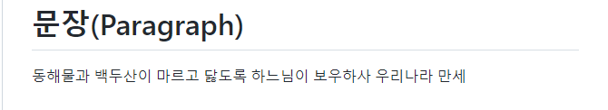 동해물과 백두산이 마르고 닳도록 <!-- 띄어쓰기 두 번-->