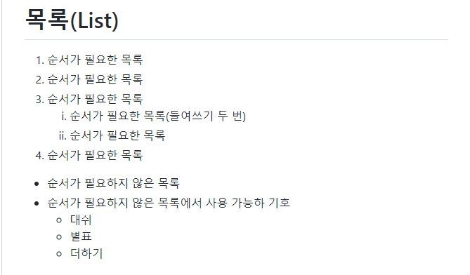 1. 순서가 필요한 목록(들여쓰기 두 번)