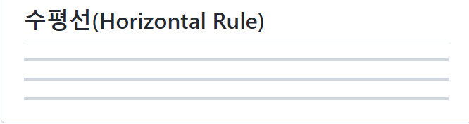 수평선을 표기할 때에는 - (마이너스 기호), * (별표), _ (언더슬래쉬) 기호를 3번씩 작성합니다.
